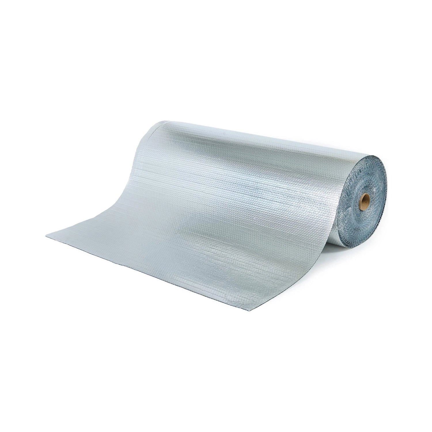 The encapsulated air bubbles minimize conductive heat transfer through the material, and the puncture-resistant white woven finish ensures product durability in all conditions, making it suitable for various applications. The exposed white finish adds an aesthetic touch.