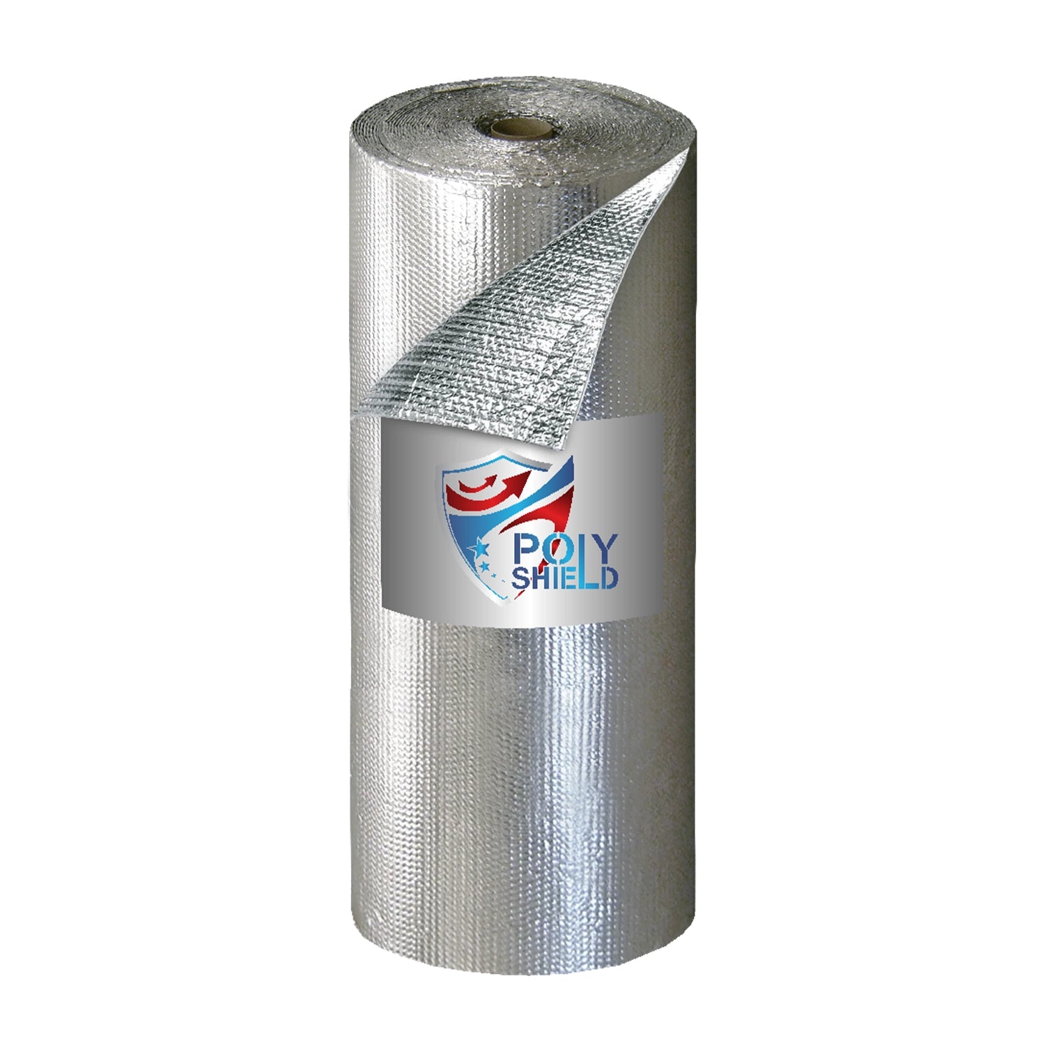 The Polyshield Reflective Double High Reflective Foils is a bubble insulation and vapor barrier (solid and non-breathable), reflecting an impressive 95% of radiant heat. This exceptionally durable product features encapsulated, long-lasting air bubbles between highly reflective surfaces. Its design aims to combat summer heat (heat gain) and retain winter-generated heat (heat loss), while simultaneously reducing moisture condensation and blocking water vapor.