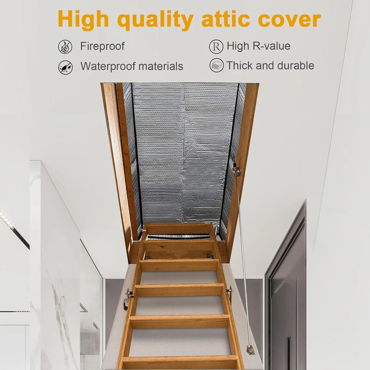 - This Attic Stairs Insulation Cover is made with premium real heavy duty commercial grade aluminum foil bubble insulation inside to provide you with all-year-round energy savings insulating performance. Fits openings up to 25" x 54" x 11"